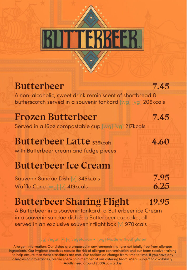 La comida no es barata, pero el Butterbeer es parte de la experiencia.