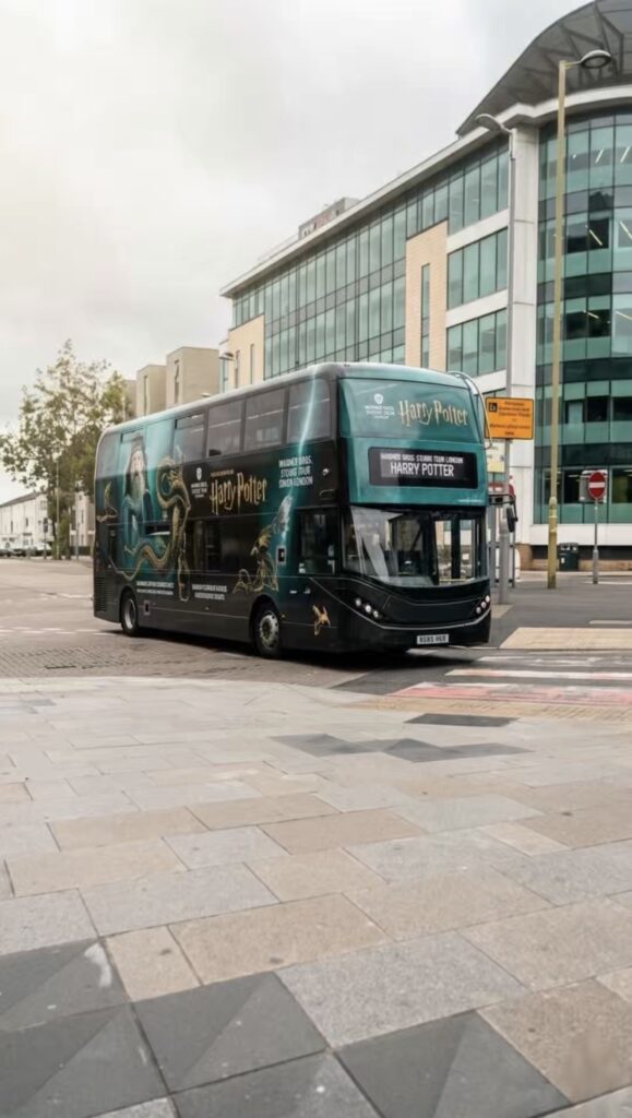 Al salir de la estación encontrarás el bus oficial del Studio Tour.